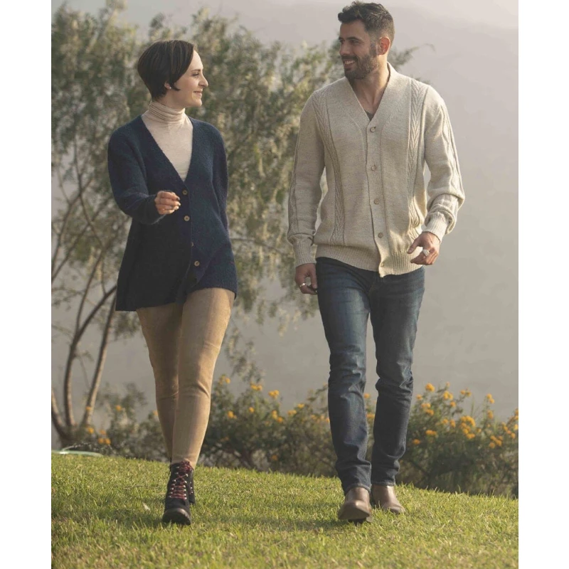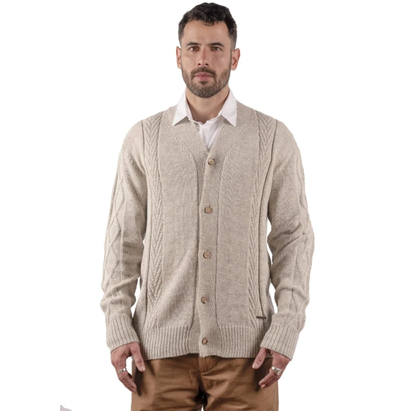 Acogedor con toques atrevidos, el cárdigan Qunuq —con sus colores profundos y serios— hará que mantengas una mirada seria pero amigable ante las personas que te rodean.